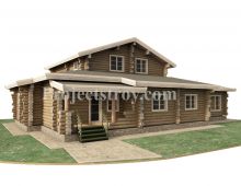 Проект загородного дома из бревна 8 на 8 м с...Проект загородного дома из бревна 8 на 8 м с открытой террасой -
