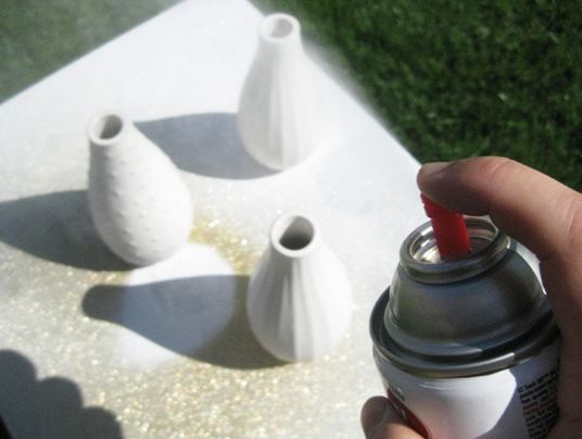 Тщательно вымойте и высушите вазу. Вынесите её на улицу для покраски, так вы сможете самостоятельно быть в безопасности и случайно не окрасить другую мебель. На вазу необходимо нанести базовый слой краски, чтобы он покрывал всю поверхность.