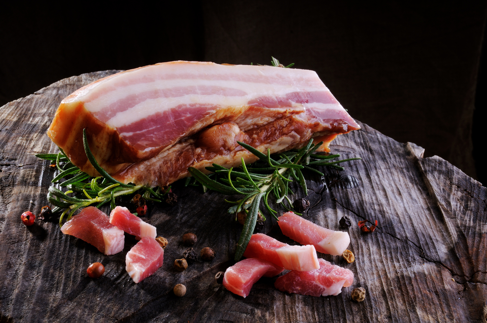 Чтобы сделать гнет, берут тарелку немного меньшего размера, чем кастрюля, переворачивают ее, накрывают сало и ставят груз. Время засолки – 10 дней. В этот период куски нужно переворачивать, поливая их образовавшимся рассолом. Когда сало будет готово, его вынимают, очищают от соли, высушивают и приступают к копчению.