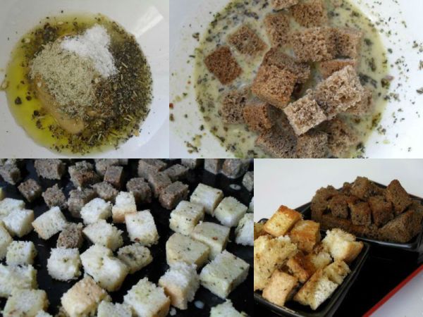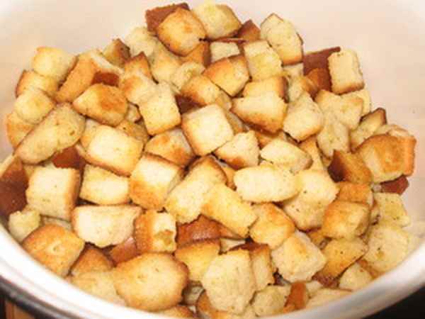 Дождитесь, пока сухари будут готовы. Если вы резали хлеб, к примеру, кубиками 1х1 см, для выпечки при температуре 140-150 градусов хватит двадцати минут. Для более крупных кубиков время сушки обычно составляет 30-35 минут. При температуре 180-200 градусов на сушку чаще всего уходит не более 10 минут.