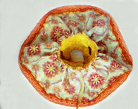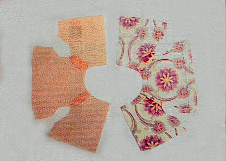 Лиф платья шьется с подкладкой. Сложите 2 вида цветной ткани лицом к лицу, обведите контуры выкроек. Раскроите детали