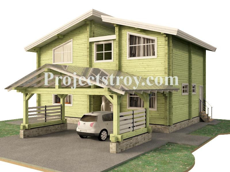 Фотоальбом «Проект дома из бруса профилированного с навесом под авто»