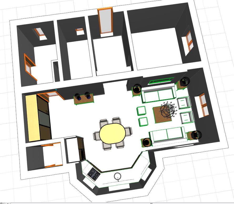 Вид сверху - проверяем удобно ли проходить, не мешает ли мебель.
