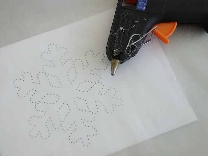 шаг 1. Нарисуйте снежинку на бумаге. Желательно использовать лощеную, иначе клей можно снять вместе с бумагой :)