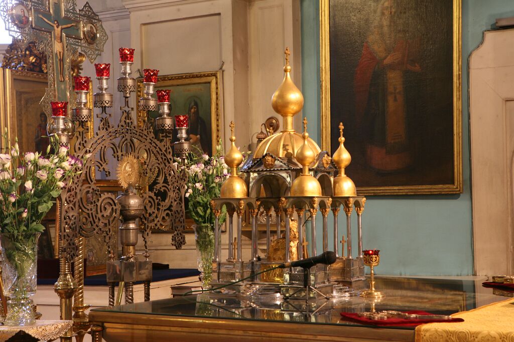 На престоле в алтаре православного храма находится дарохранительница. В ней хранятся засушенные святые дары (Тело и Кровь Христа) для причащения верующих людей на дому.