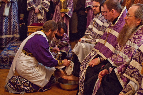 Чин умовения ног в Страстной Четверг. Совершается правящим архиереем епархии.