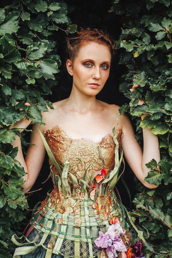 Платье «Цветочные сады», представляющее собой композиции из цветов и травы.