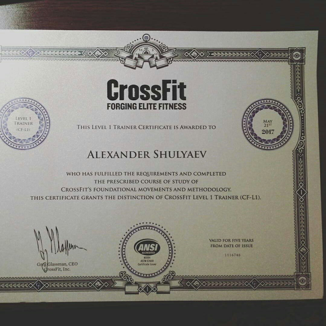shulyaevalex Эксперт 31 5 подписчиков + Фитнес-тренер, Спортсмен Форум (0) Статьи (2) Отзывы (0) Фотоальбомы (1) Спросить Фотоальбом «Портфолио» 3 фото Наконец-то из штатов пришёл сертификат тренера CrossFit level 1.
