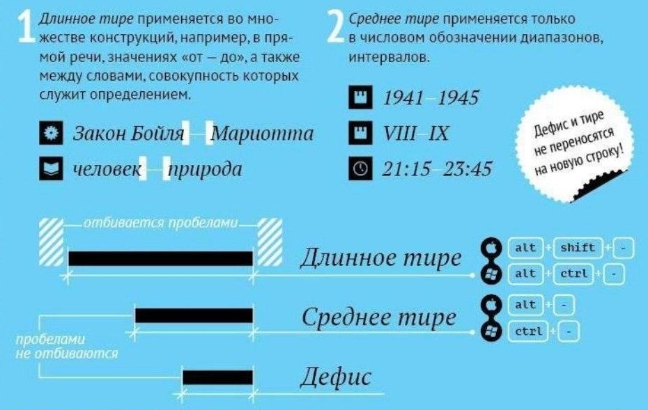 Использование длинного тире, среднего тире и дефисов